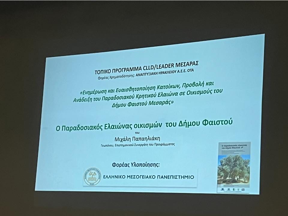 Ημερίδα για Προβολή και ανάδειξη παραδοσιακού ελαιώνα Δήμου Φαιστού -Μεσσαρά Καμηλάρι 26-6-25